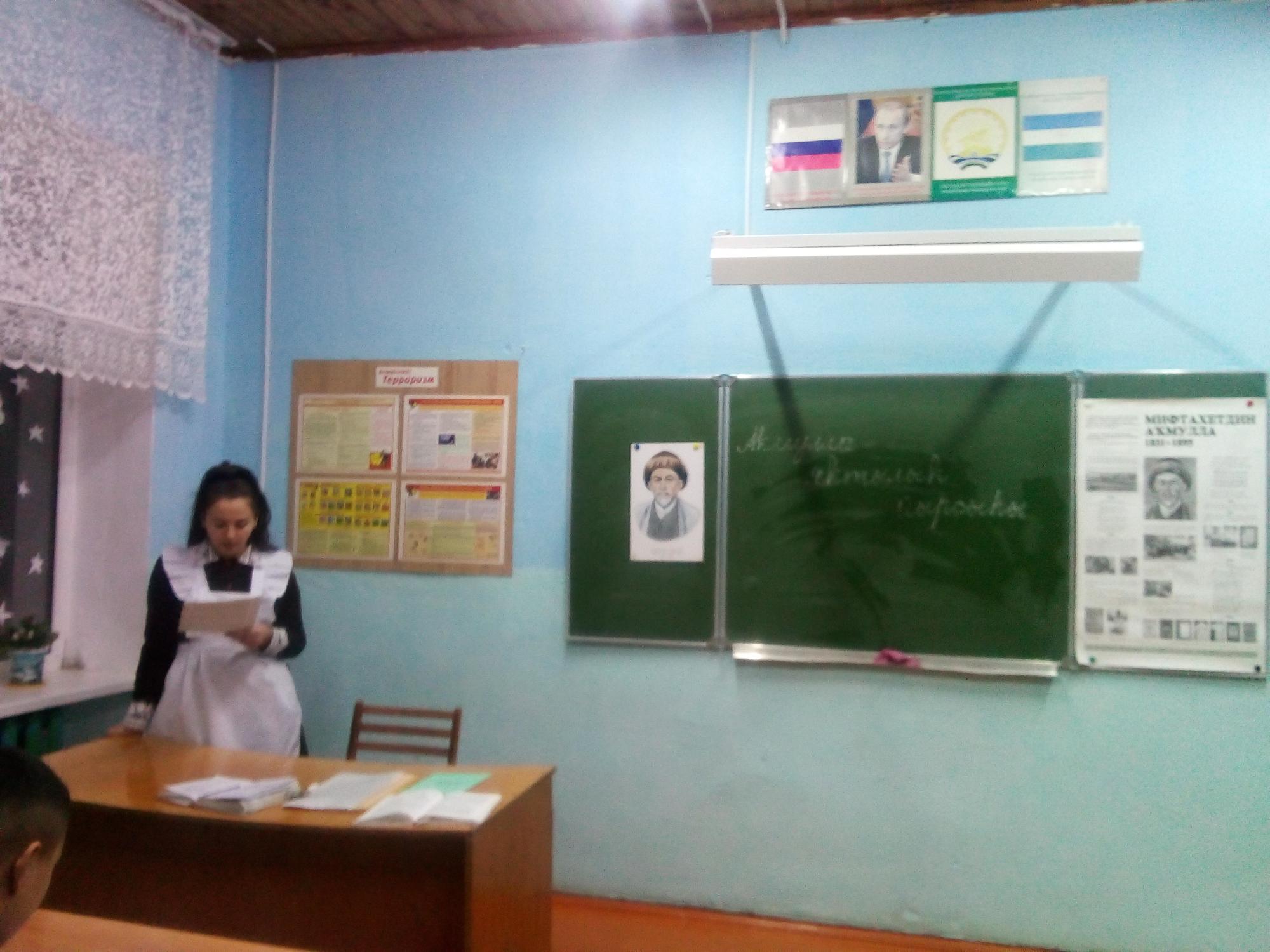 "Башҡорт теле - аҡыл теле" девизы менән беҙ бөгөнгө көндө башланыҡ. 9 синыф уҡыусылары алдында 11 синыф уҡыусыһы Сәлимова айһылыу "Аҡмулла --яҡтылыҡ йырсыһы" исеме менән уен-дәрес күрһәтте. Дәрестә Аҡмулланың тормошо һәм ижады менән бәйле булған викторина һорауҙары яңғыраны. 9 синыф уҡыусылары һынатманылар, һорауҙарға актив яуап бирҙеләр.