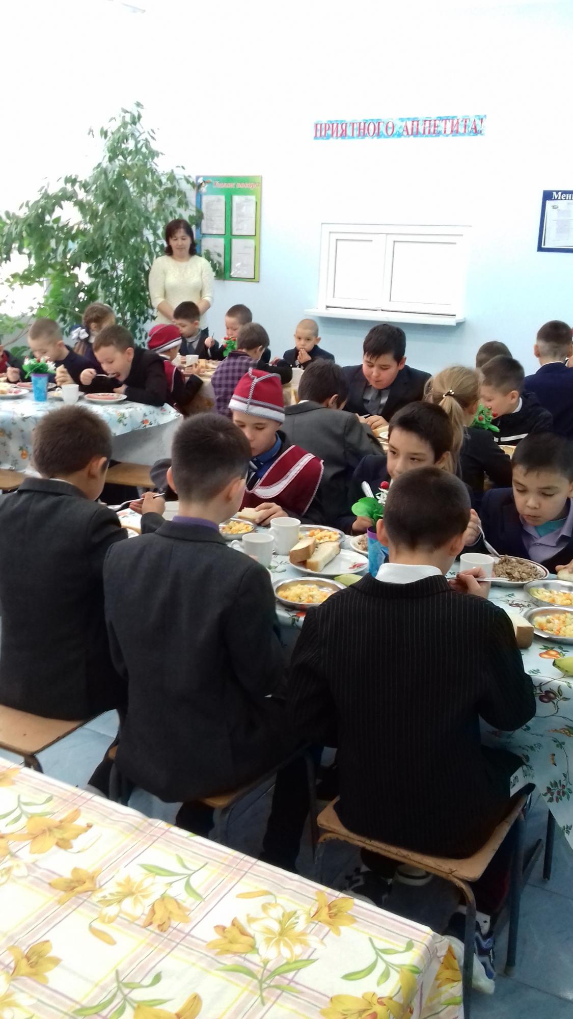 Организация питания в школе соответствует требованиям, предъявляемым к школьным столовым: площадь столовой - 50 кв. м , рассчитана на 40 посадочных мест. Водоснабжение и канализация централизованные. В столовой имеется обеденный зал, горячий цех, моечная столовой посуды, моечная кухонной посуды, помещение для хранения продуктов, цех первичной обработки овощей, цех вторичной обработки овощей, мясно-рыбный цех, санузел для персонала, комната персонала, душевая персонала, раздаточная, кладовая отходов. В кухне имеется необходимое оборудование, мойка обеспечена горячей водой, все помещения столовой содержатся в соответствии с санитарно- гигиеническими требованиями, сырье и пищевые продукты хранятся в соответствии с требованиями, контроль за хранением сырья, пищевых продуктов и готовых блюд осуществляет бракеражная комиссия, сотрудники пищеблока обеспечены спецодеждой, в столовой созданы условия для соблюдения правил личной гигиены, обеспечено нужное количество моющих, дезинфицирующих и чистящих средств, регулярно проводится дезинфекция и дератизация.
