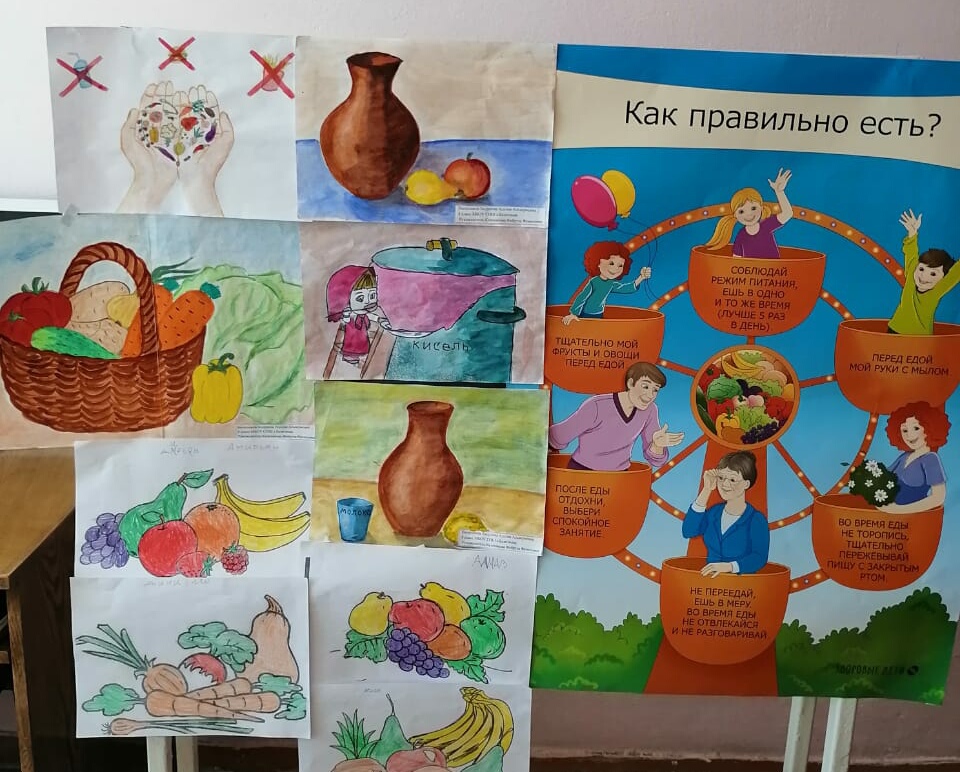 С 19 апреля по 23 апреля 2021 года в школе проходит Неделя здорового питания. В рамках недели во всех классах проведены классные часы, анкетирование, организованы выставки рисунков, обновлены стенды о здоровом питании.
